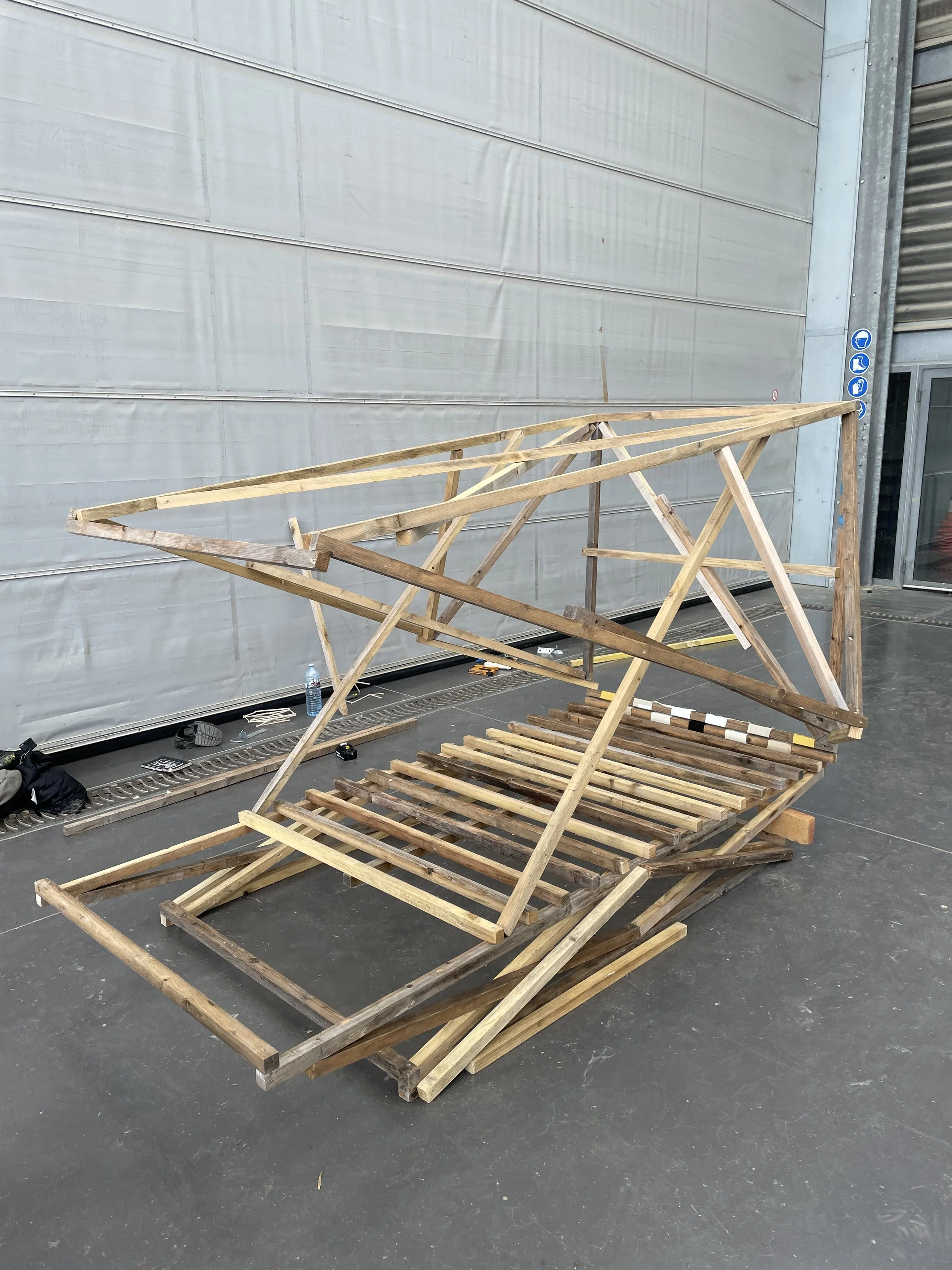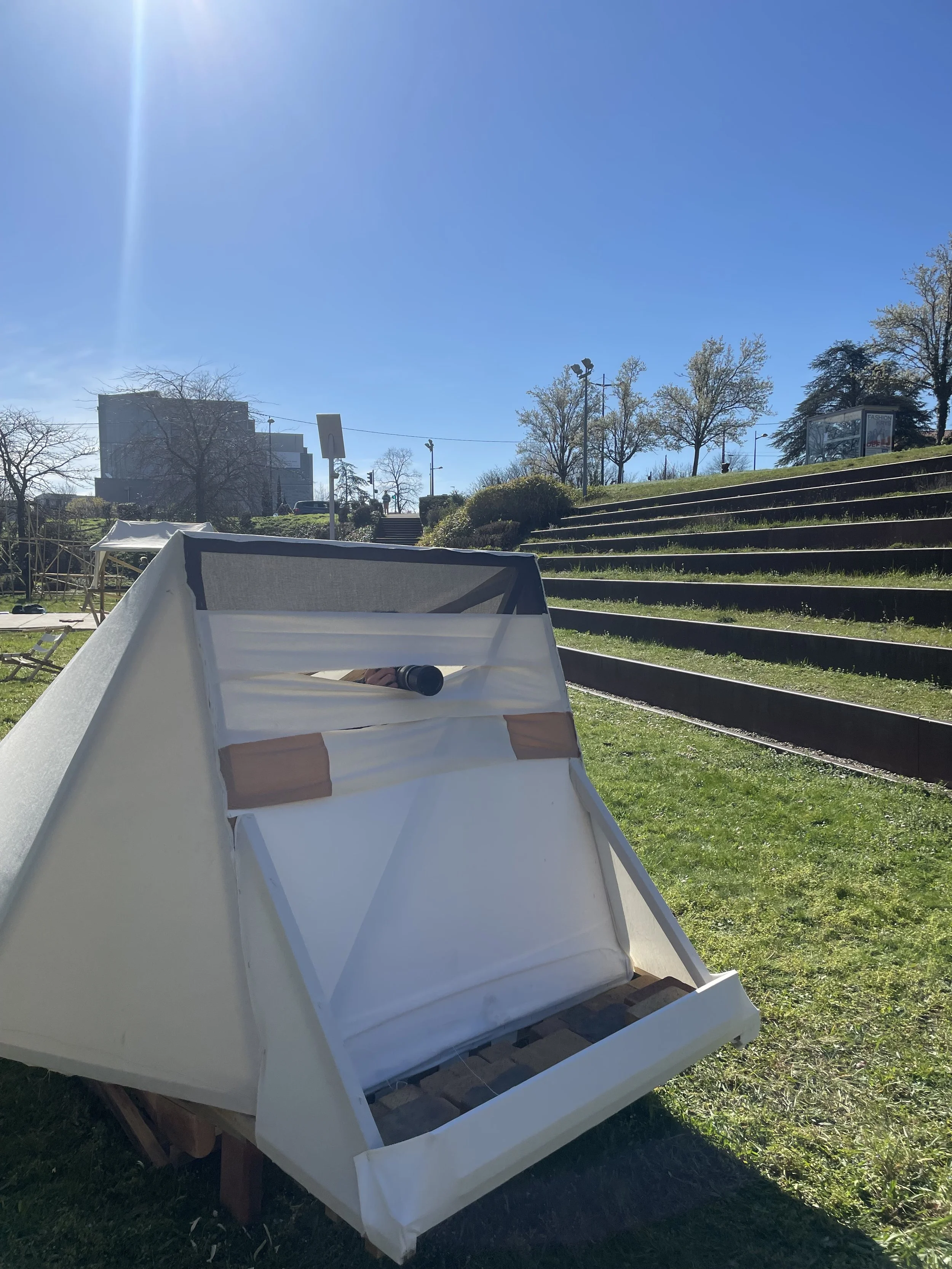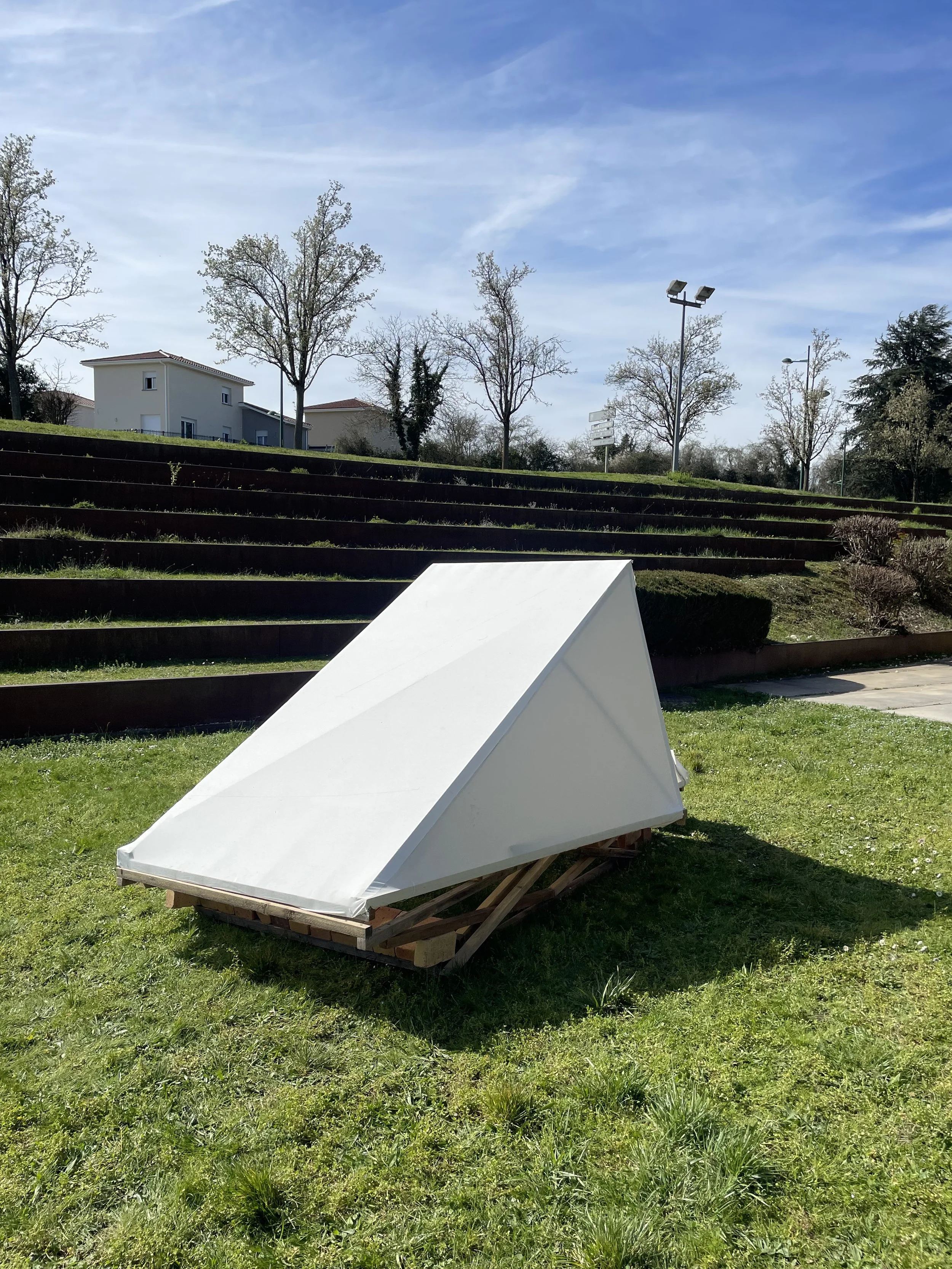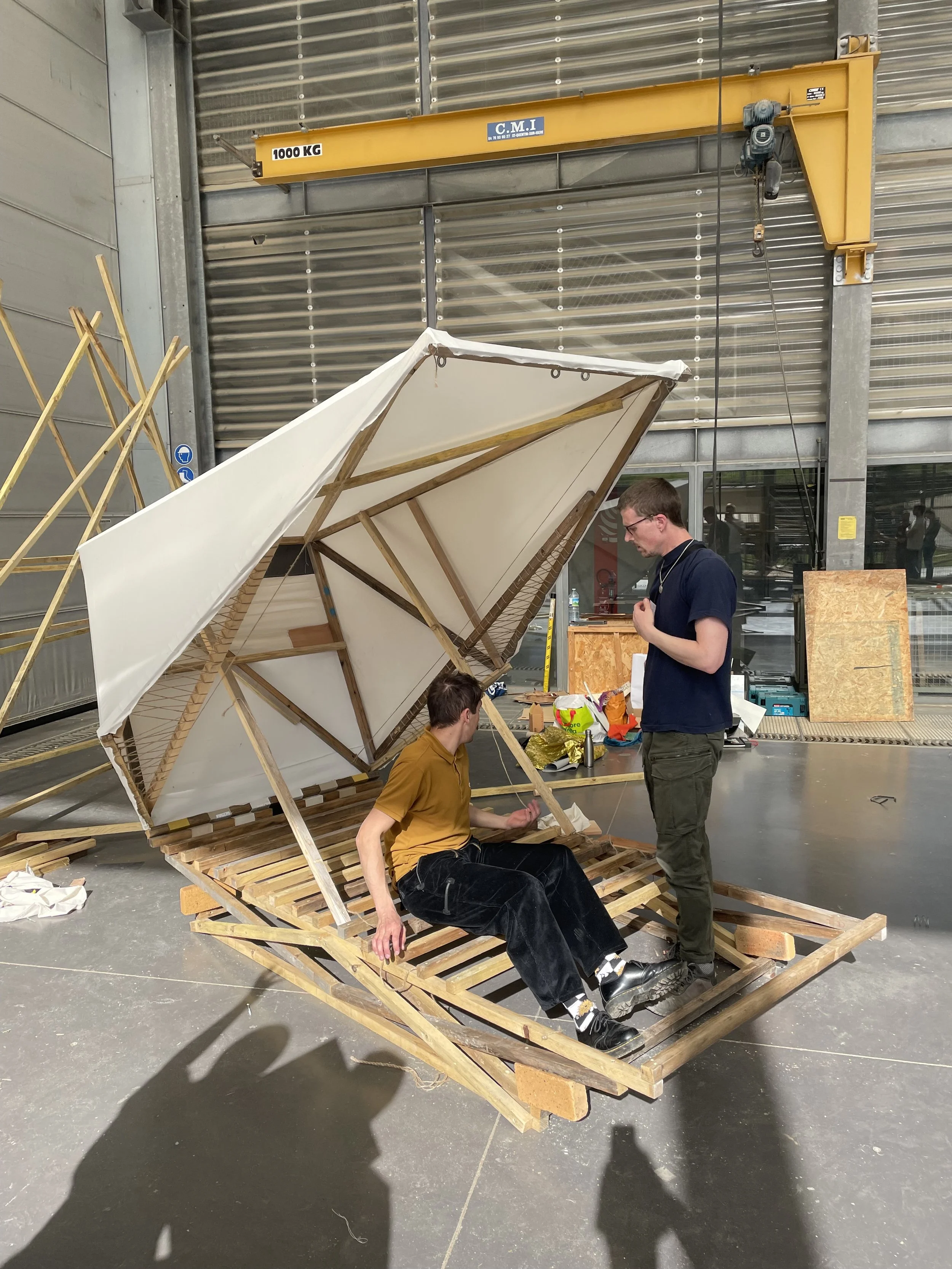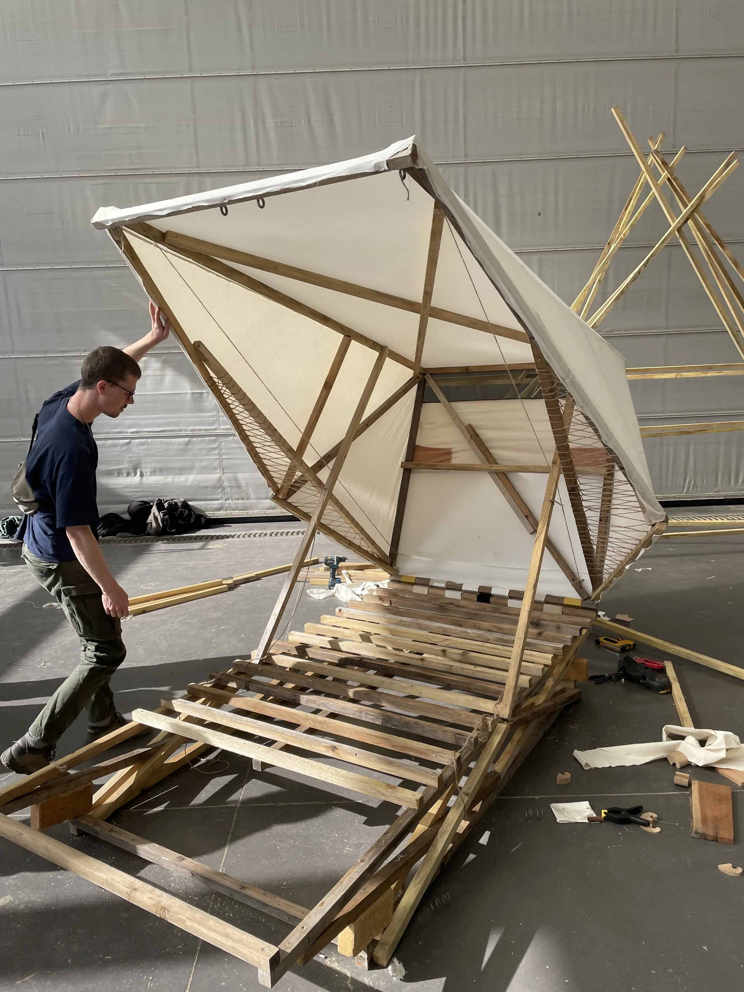 The zavie project was created during a one-week international exchange with the “Compagnos du Devoir” near Lyon, France. The task was to construct an observation station for ornithologists in the Nevada desert. The challenge arose from the limited materials to be used: bricks, squared timber, a little cloth, string and screws.