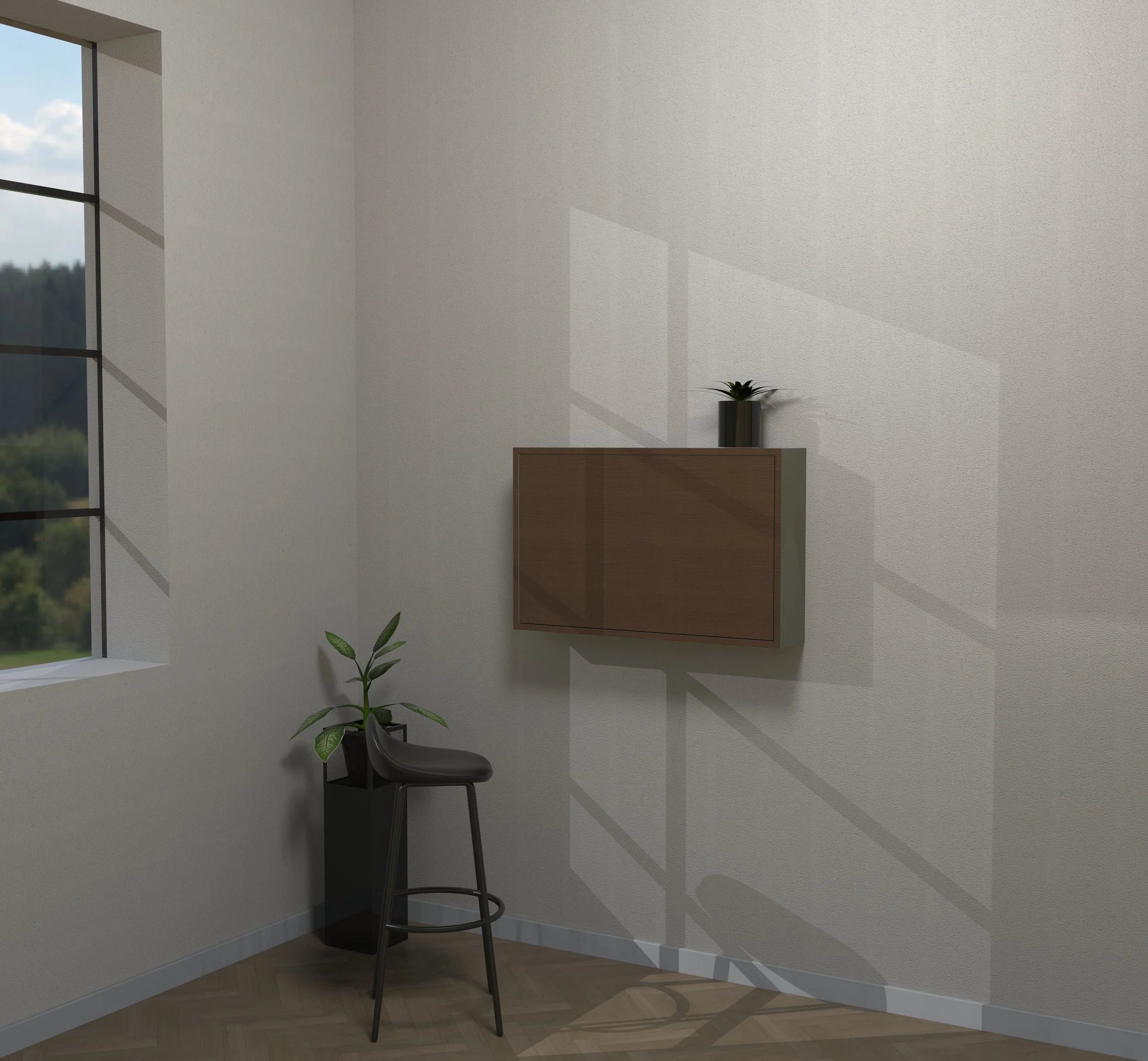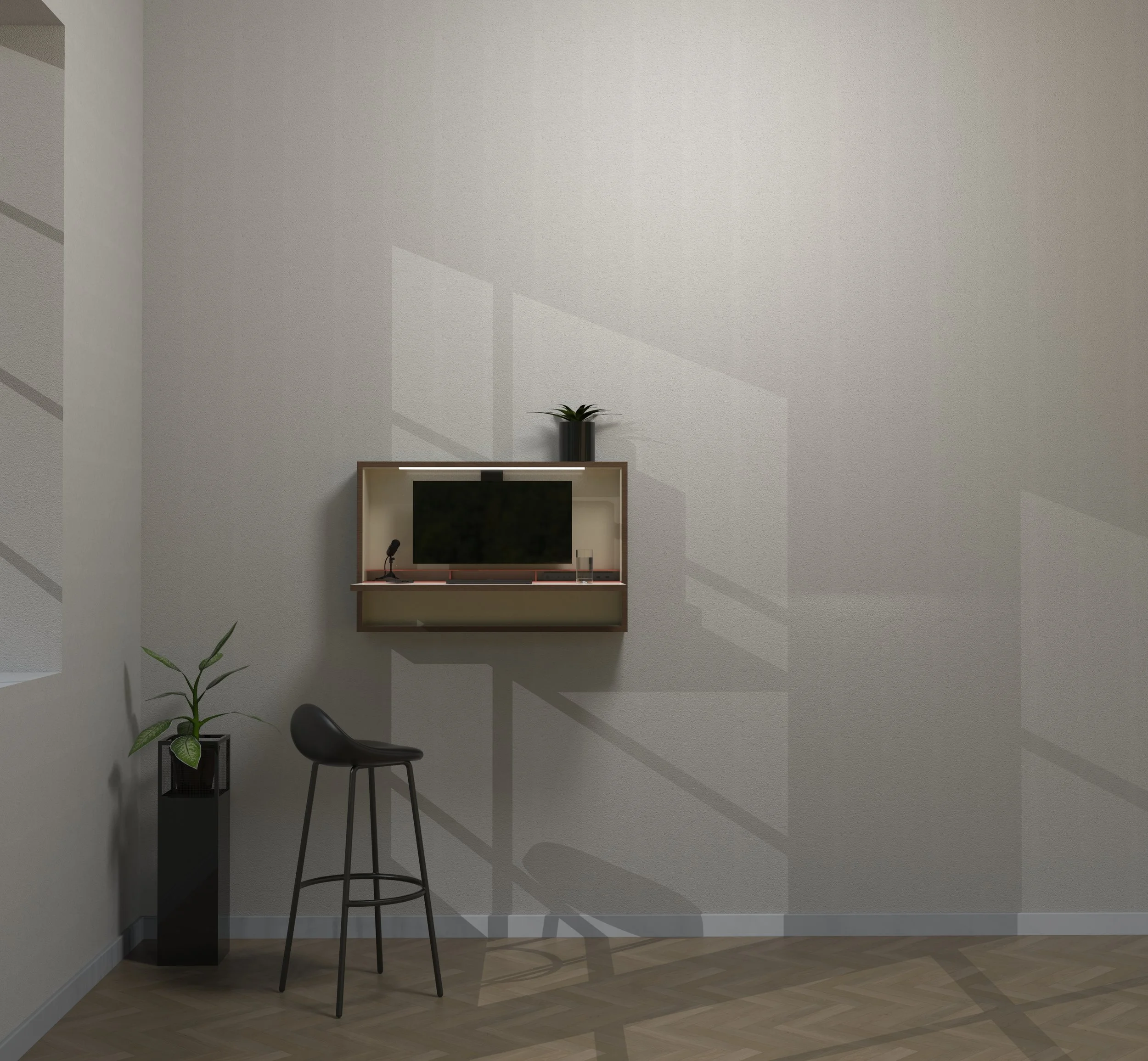 smartspace draws a clear line between work and private life. Once the work is done, the table top can simply be folded away. This gives you the advantage of always having a fully equipped workstation at home without your work taking over your home.